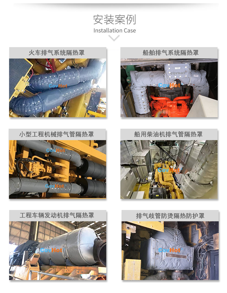 排氣管隔熱套主要用于船用柴油機(jī)排氣系統(tǒng)保溫隔熱、發(fā)電機(jī)配套動(dòng)力系統(tǒng)排氣保溫隔熱、礦山車輛發(fā)動(dòng)機(jī)排氣系統(tǒng)保溫隔熱等其他類型的車輛排氣系統(tǒng)保溫隔熱。